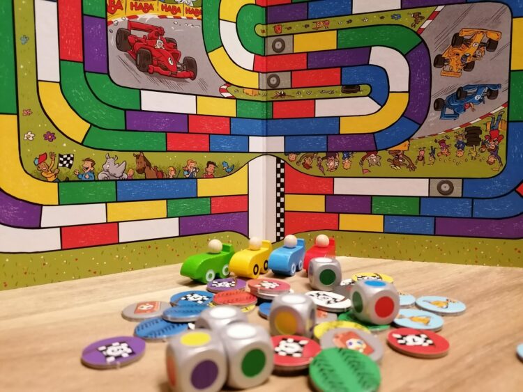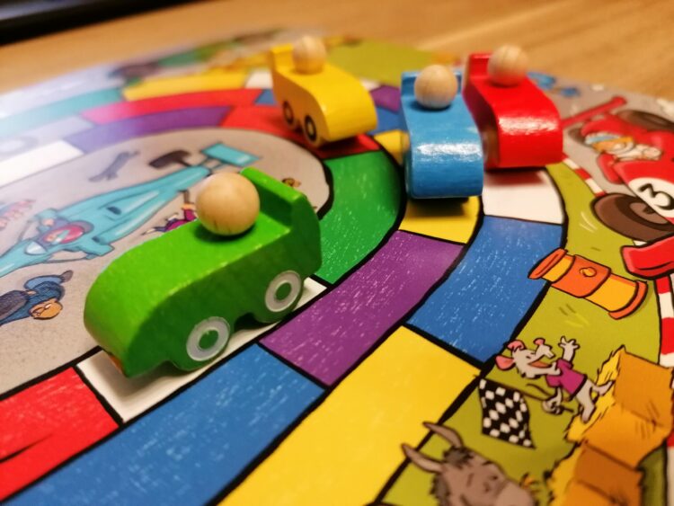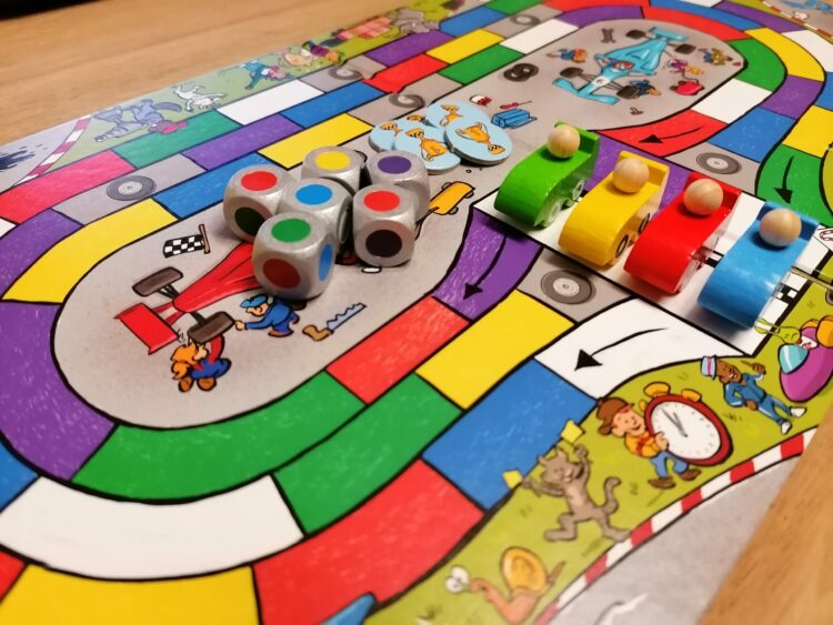 Ons oordeel: Het spel is simpel en echt speciaal gericht op kinderen. Om de race te winnen moet je geluk hebben met het gooien van de dobbelstenen. Maar voor kinderen is dit wel een goede manier om dat te leren. De kleuren maken het bord aantrekkelijk en de houten raceauto’s maken het voor kinderen compleet. De 2 versies in het spel maken het spel geschikt voor jonge kinderen en geeft ook de oudere kinderen weer een nieuwe spelervaring. Door een combi van de spelregels kun je zelf ook het spelniveau aanpassen zodat het goed past bij de leeftijd van je kinderen.