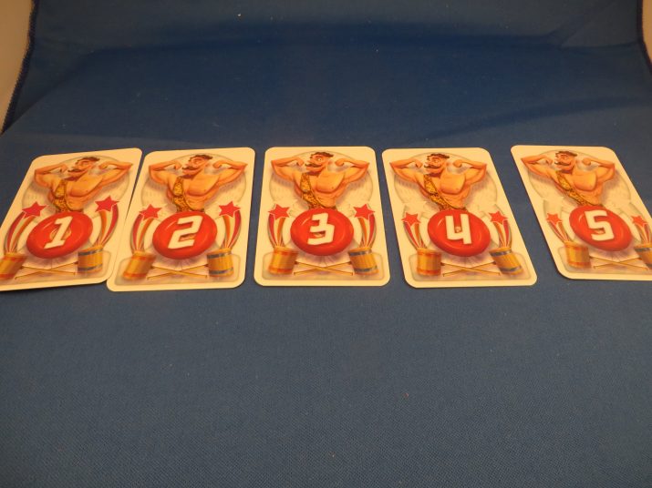 De speler met prijskaart 1 mag nu van alle kaarten op tafel 2 kaarten pakken met de hoogste ticketnummers: In dit geval de middelste 2 kaarten (nummer 3 en 1 met ticketnummer 3 en 4). De kaart met het laagste ticketnummer van deze 2 kaarten gaat gedekt onder zijn/haar prijskaart en de hoogste wordt weer op hand genomen. Nummer 2 kiest nu van de overgebleven kaarten de 2 hoogste ticketnummers: In dit geval kan gekozen worden uit 3 kaarten van ticketwaarde 2 (de 5, 4 en 5). De derde pakt wat over is (1 kaart 2 en 1 kaart 0 ticketwaarde). Speler 1 heeft dus nu 1 kaart met ticketwaarde 3 gedekt liggen; speler 2 ticketwaarde 2 en speler 3 ticketwaarde 0.